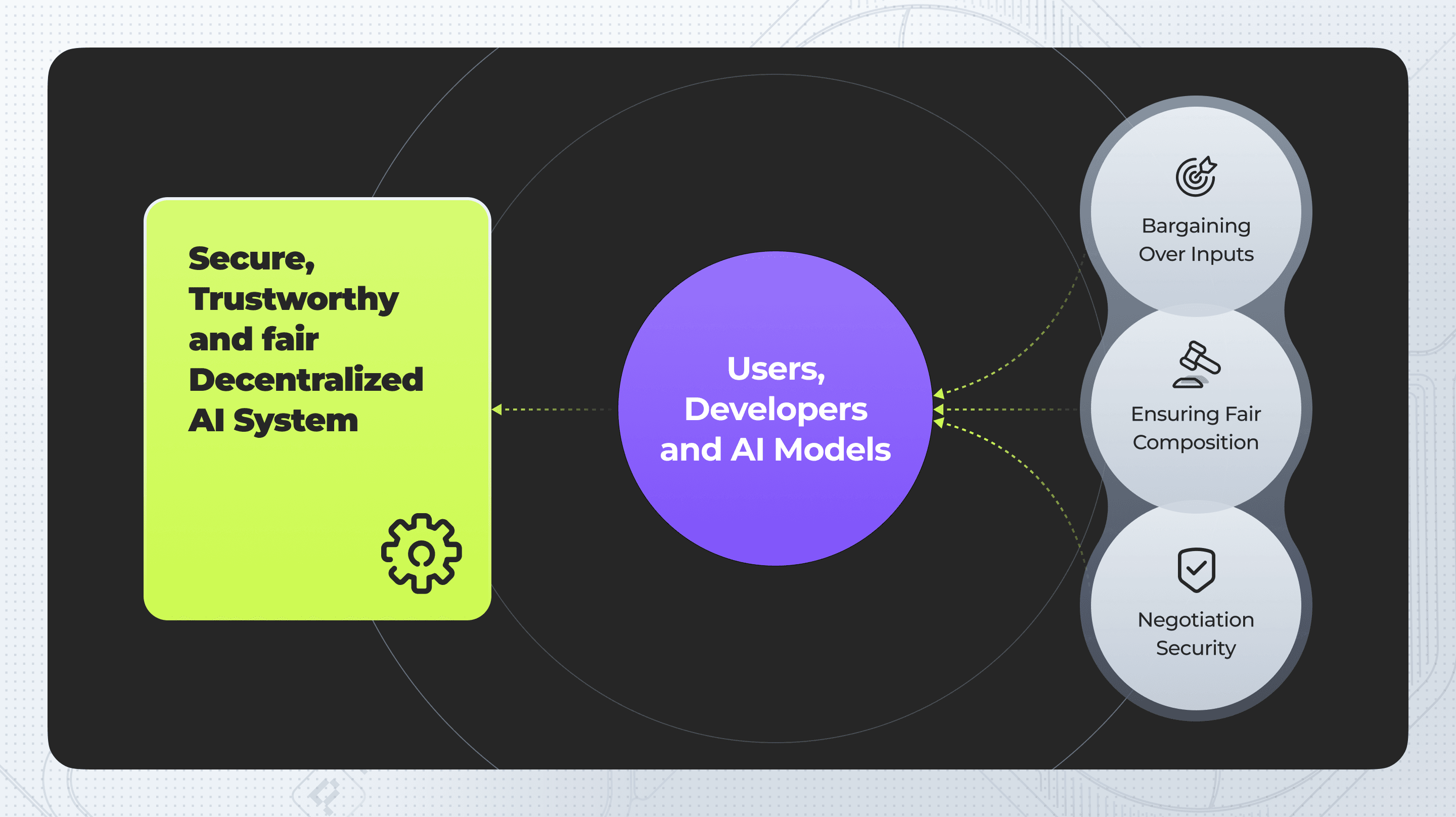 In decentralized AI systems, entities like users, developers, and AI models often need to collaborate while keeping their data secure. This process is akin to bargaining, where each party has private data and objectives.