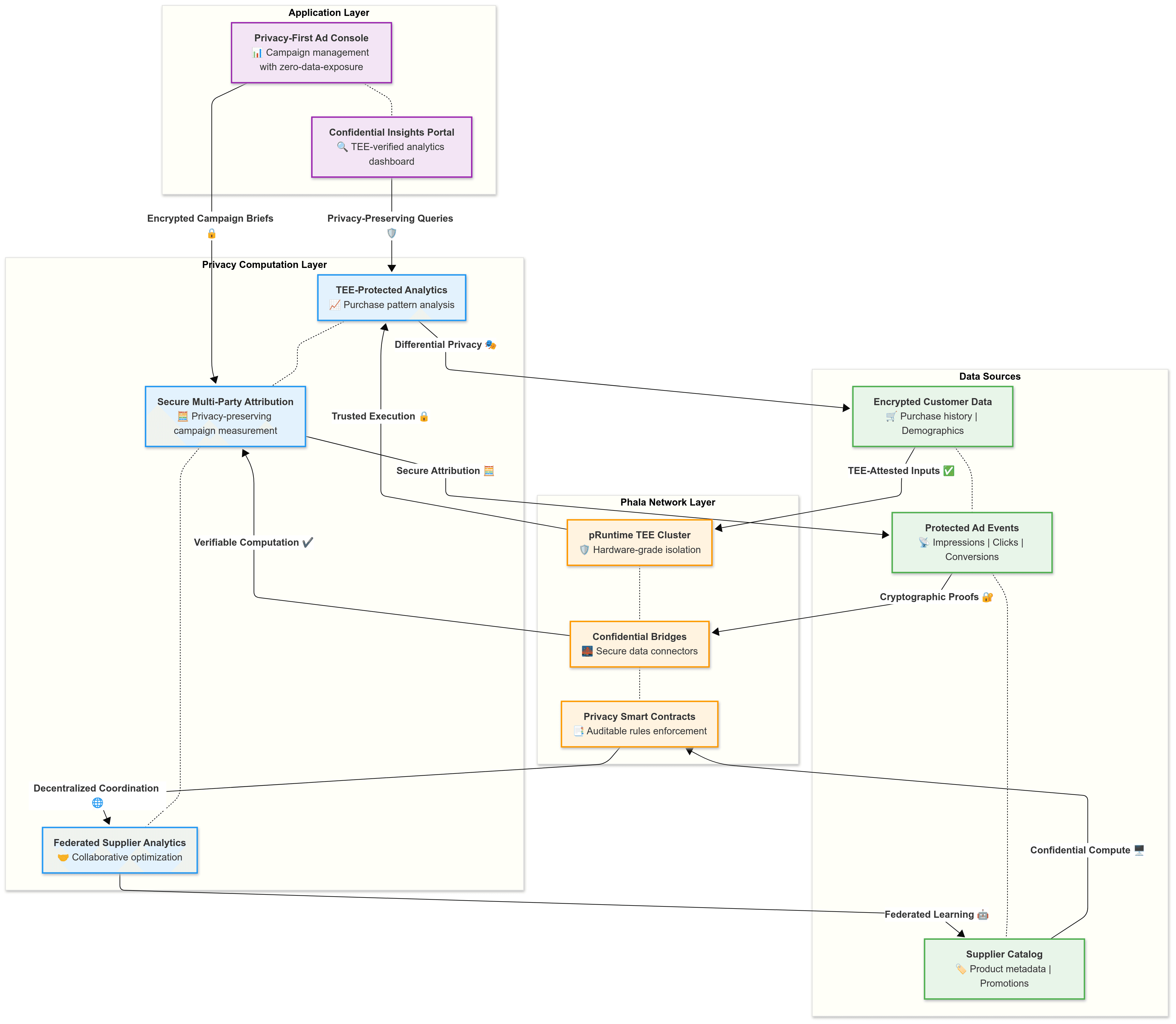 Competitive Intelligence Safeguarding: Privacy computing ensures competing brands cannot access each other's campaign performance data or customer overlap information. Hardware-level isolation maintains competitive confidentiality while enabling sophisticated category-level insights.