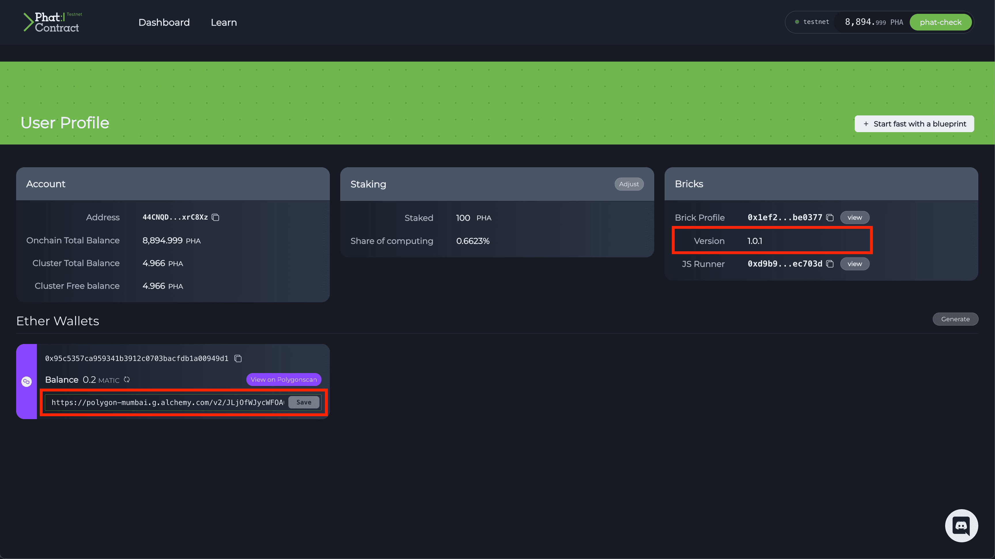 First, create your Bricks Profile account on the Phala PoC5 Testnet or Phala Mainnet. Here is a quick 1 minute YouTube video on setting up from scratch.