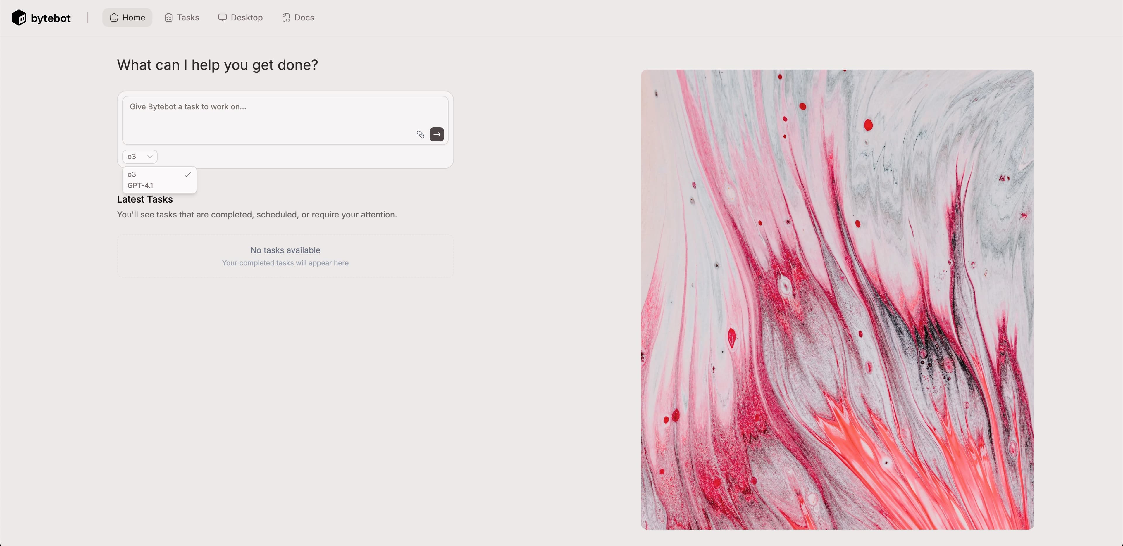 - No rewrites. Keep your existing LLM provider (e.g., OpenAI). The template wires in your API key and ByteBot just works.