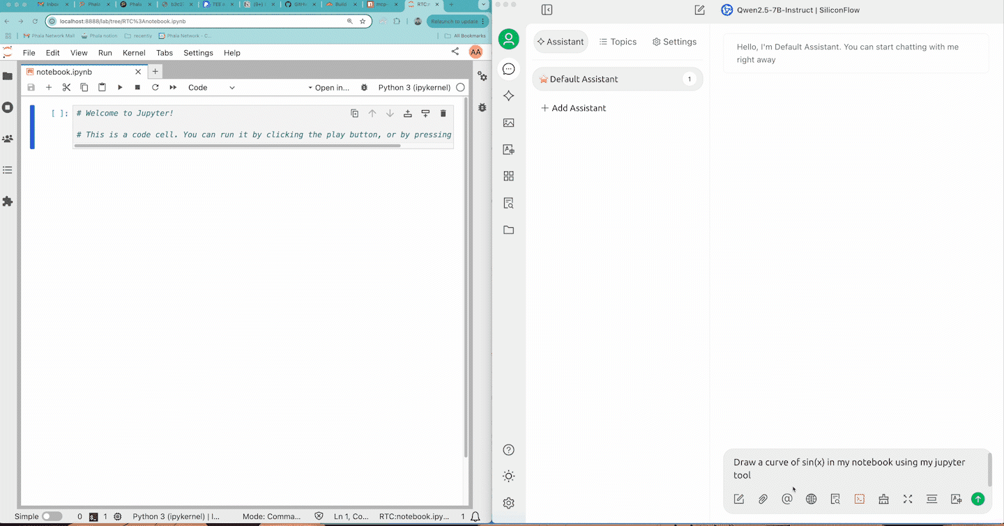 The original Jupyter Notebook MCP server is implemented in here. We forked it to this repo and change the transport to sse to support the remote server. Now you can test locally and deploy the MCP server to Phala Cloud with the docker compose file in this repo.