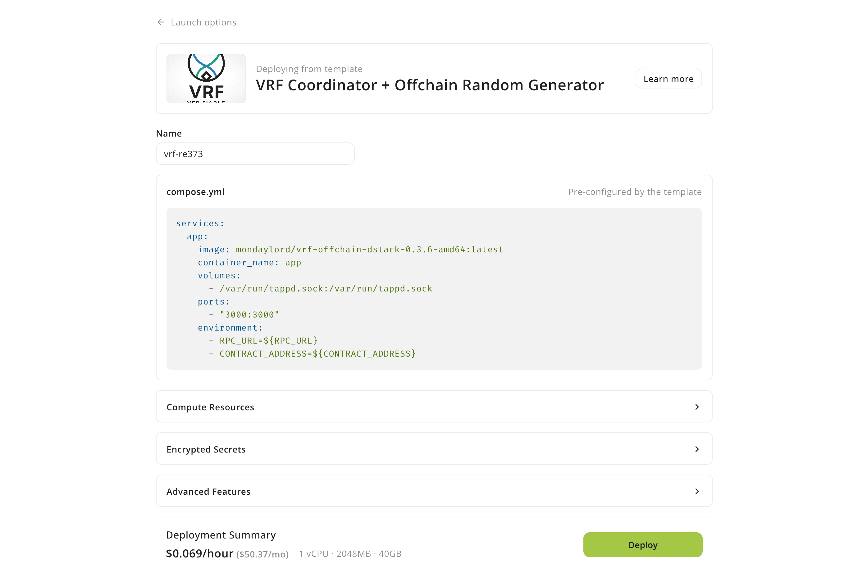 Developers now can run a verifiable random function (VRF) service on Phala Cloud, start with the VRF template within minutes. This template is designed for security, reliability, and ease of deployment. The core features that worth to highlight are: