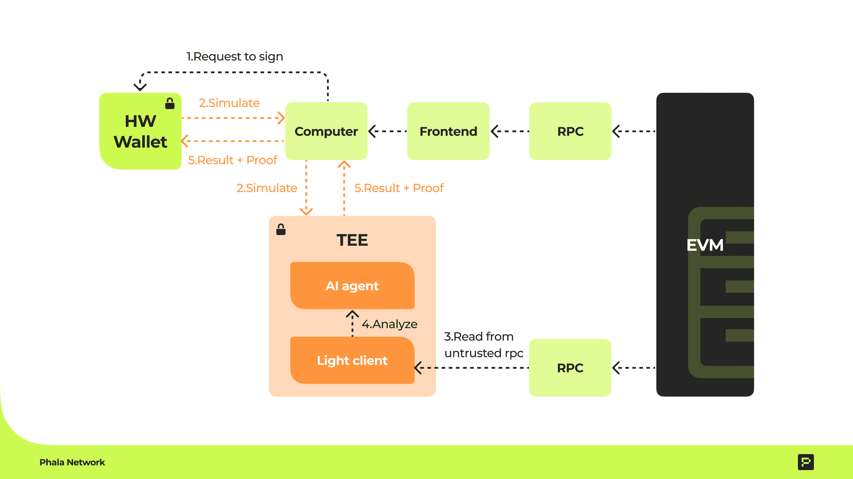 - The hardware wallet validates the TEE’s proof, ensuring the simulation is authentic.