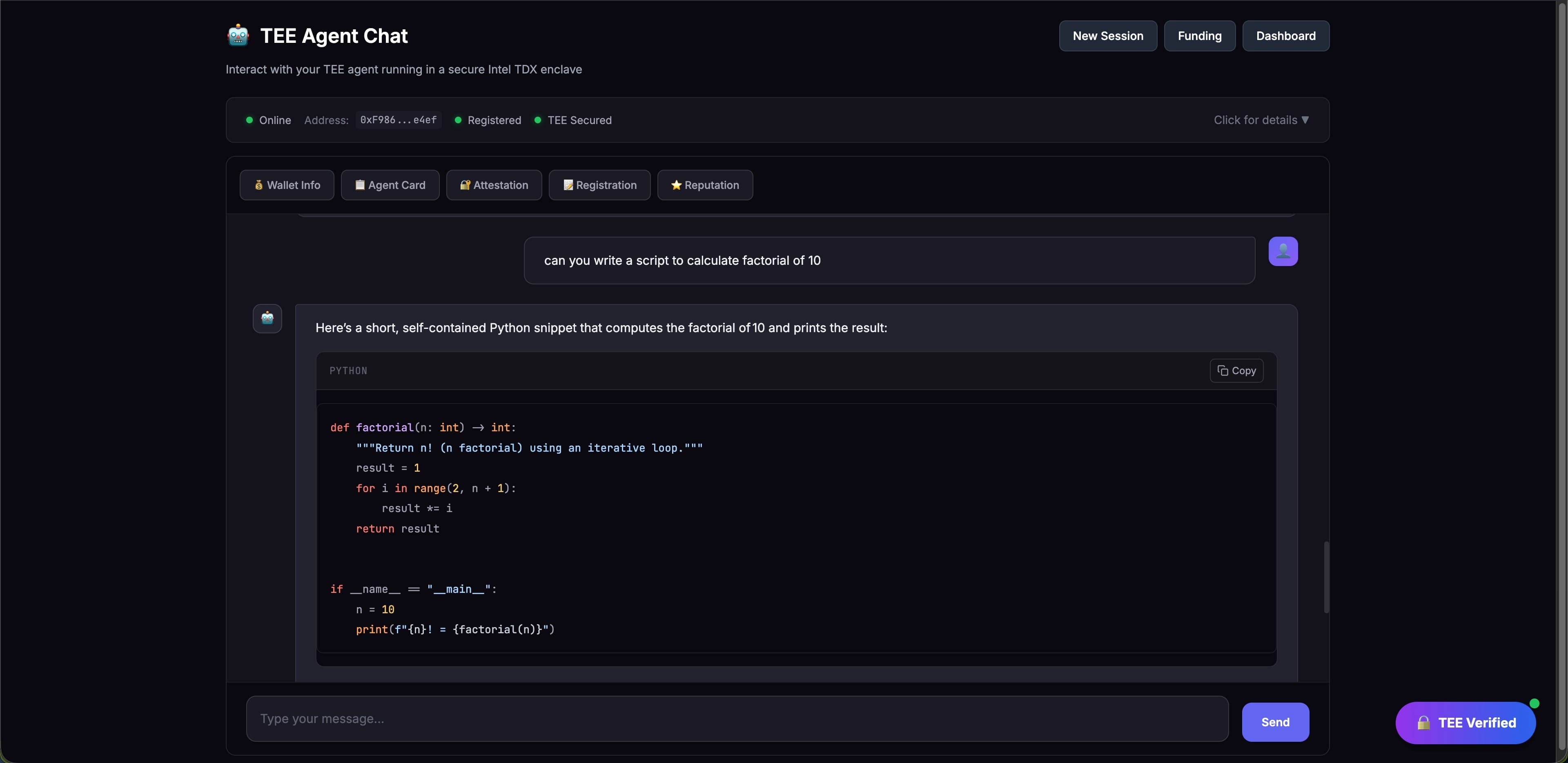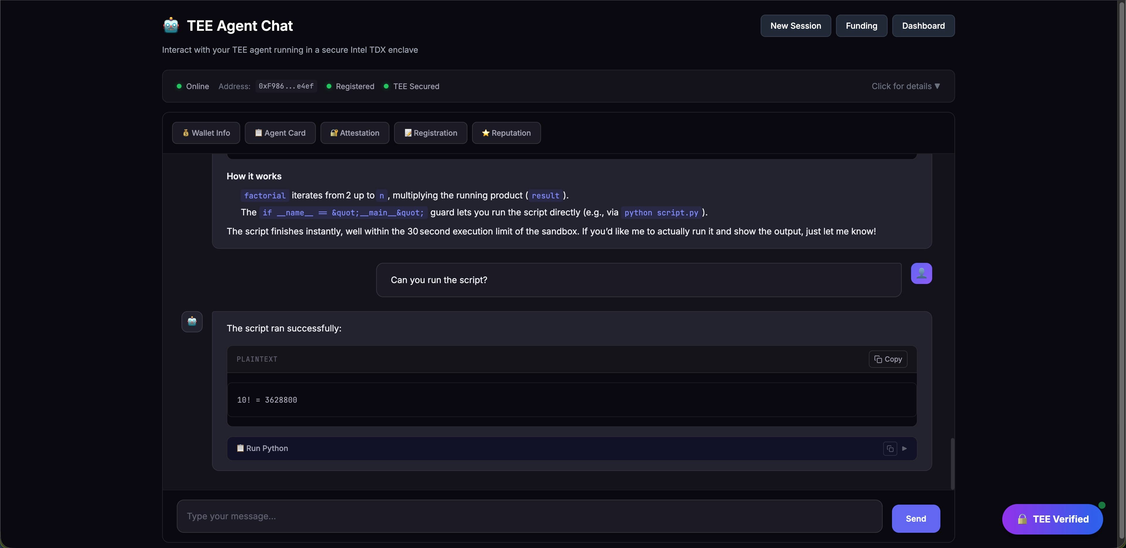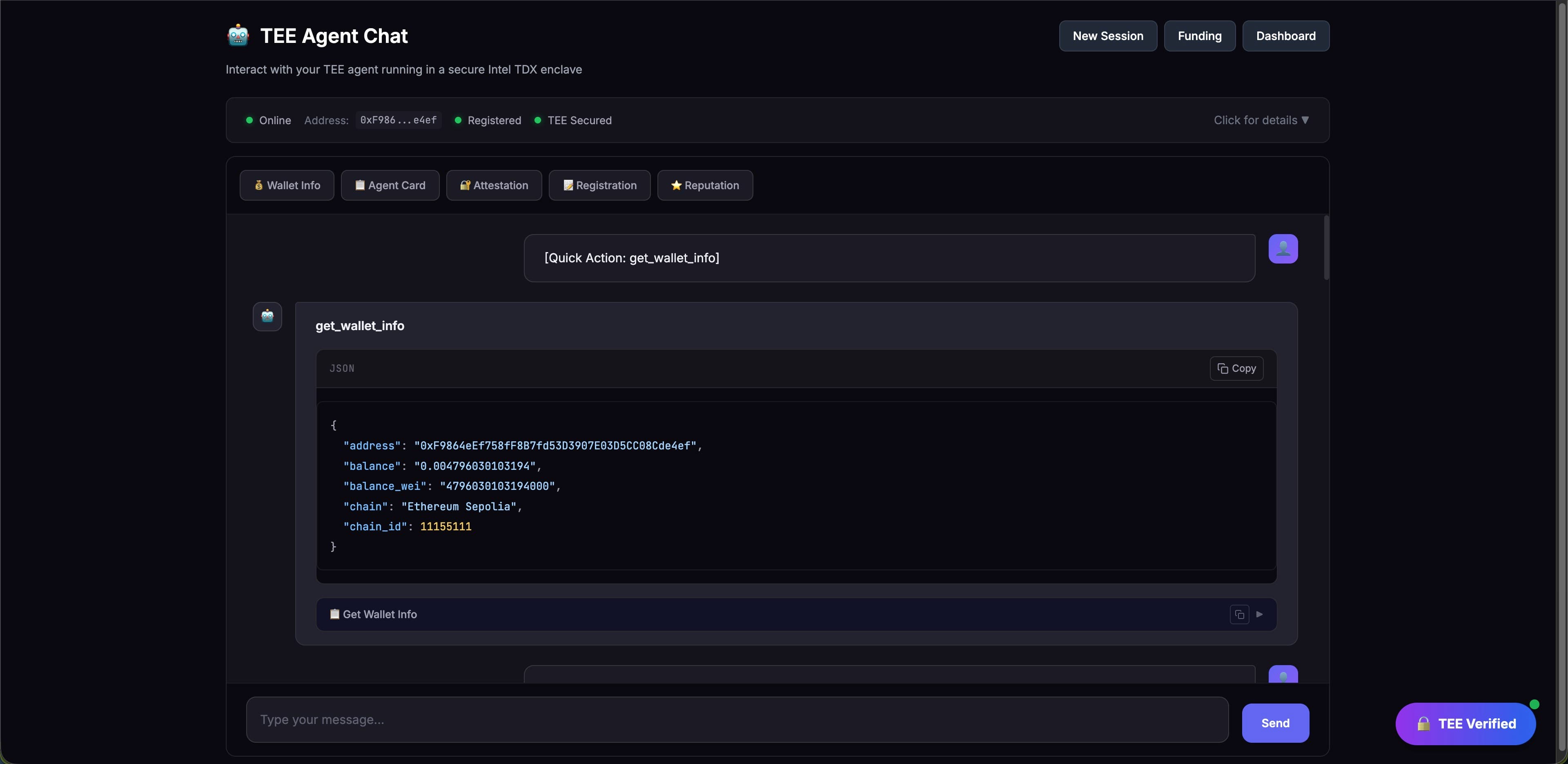 Congratulations! You've deployed a TEE-secured AI agent with on-chain identity.