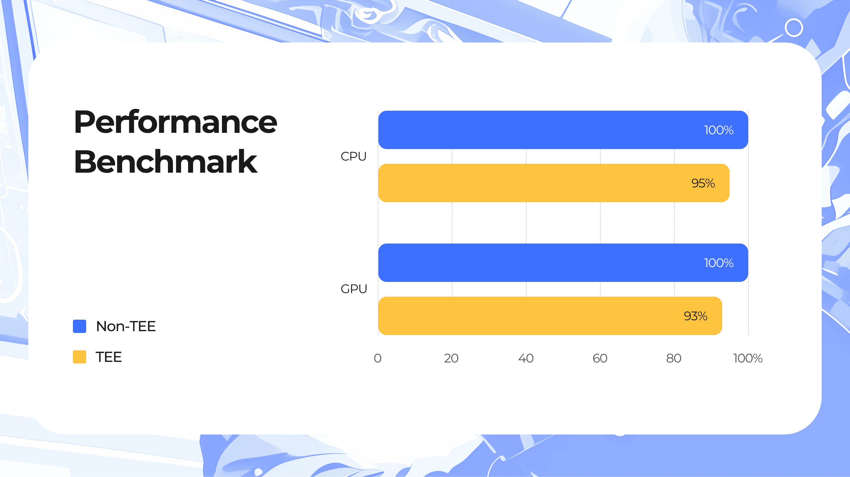 - Near Native Performance – Phala TEE computing delivers near-native performance, with CPU and GPU benchmarks reaching 95% and 93% of non-TEE environments, ensuring high efficiency without compromising security.