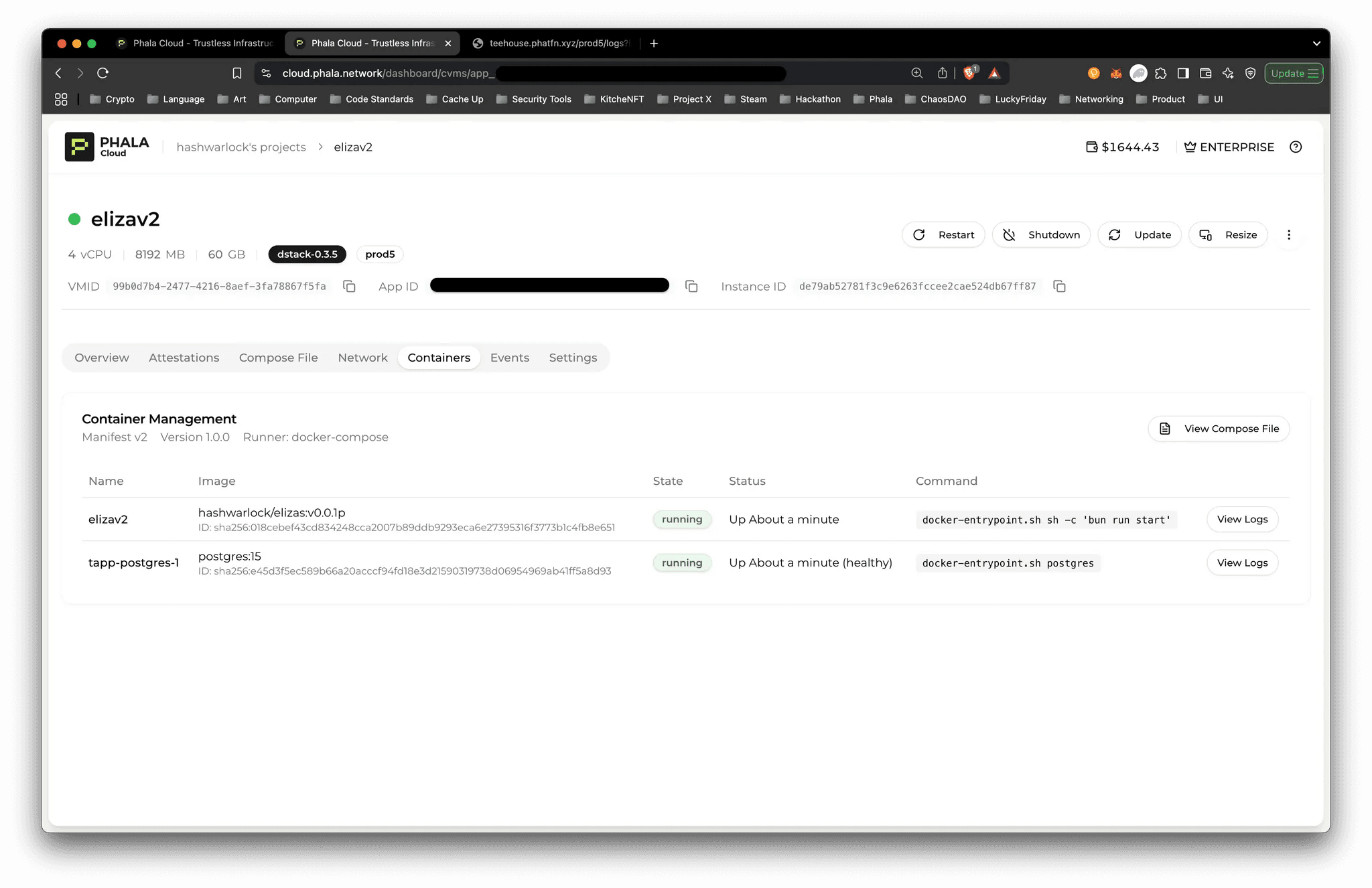 Head to “Containers” section on Phala Cloud to view deployed containers.