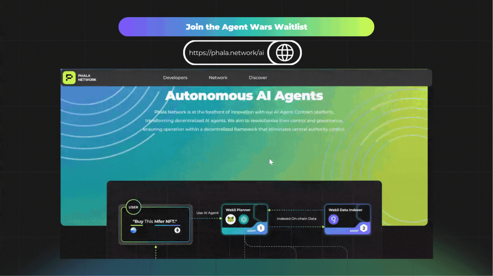 If you are keen to be among the first to experience the game, we encourage you to sign up for an Agent Wars invite code. To do this, simply visit the following website: https://phala.network/ai and click “Join the Agent Wars Waitlist”.