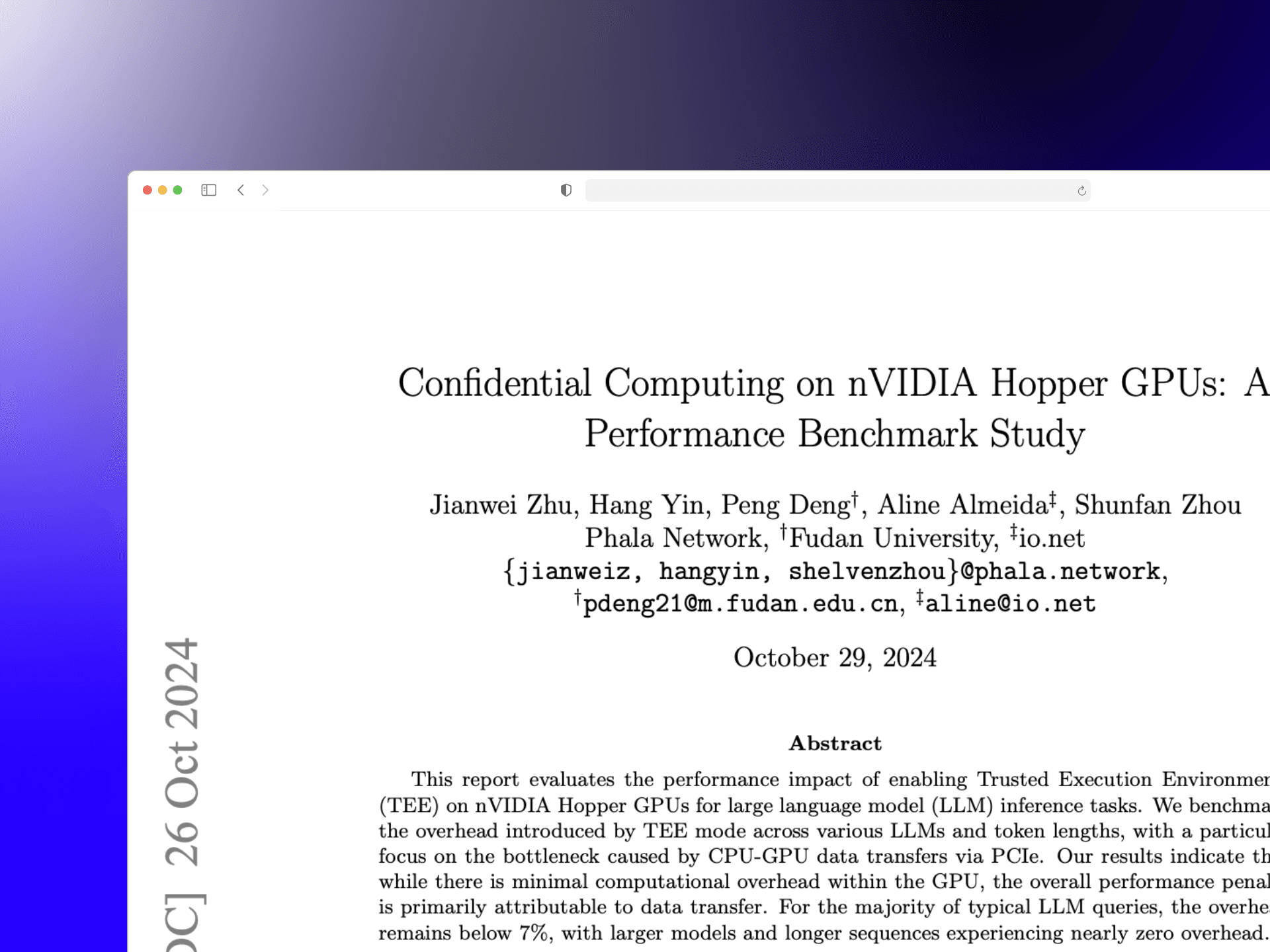 In a recent study by Phala Network, io.net, and Engage Stack, the performance impact of enabling TEE on NVIDIA H100 and H200 Hopper GPUs was examined for large language model (LLM) inference tasks: https://arxiv.org/abs/2409.03992