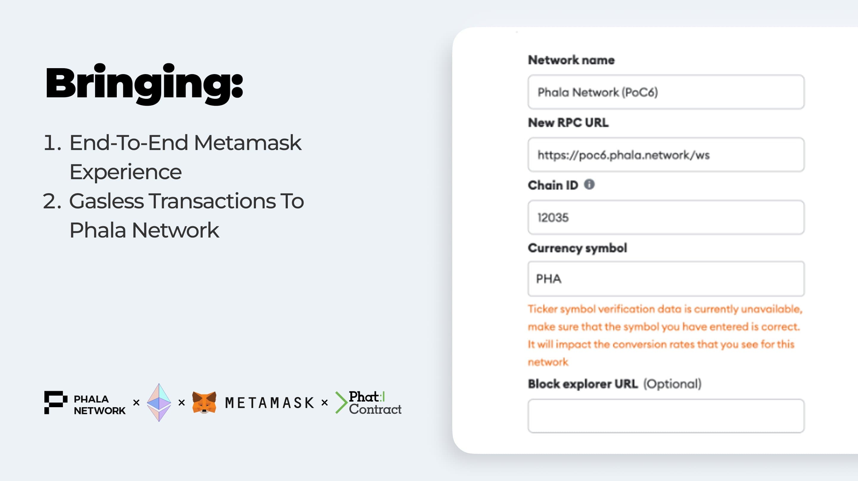 Phala Network's testnet introduces account abstraction, enabling easier use of Phat Contracts on Ethereum and EVM chains through MetaMask. This update removes KYC, lowers gas fees, and simplifies transactions, with plans for gasless transactions and a free Phat Contract deployment per account. Read more here.