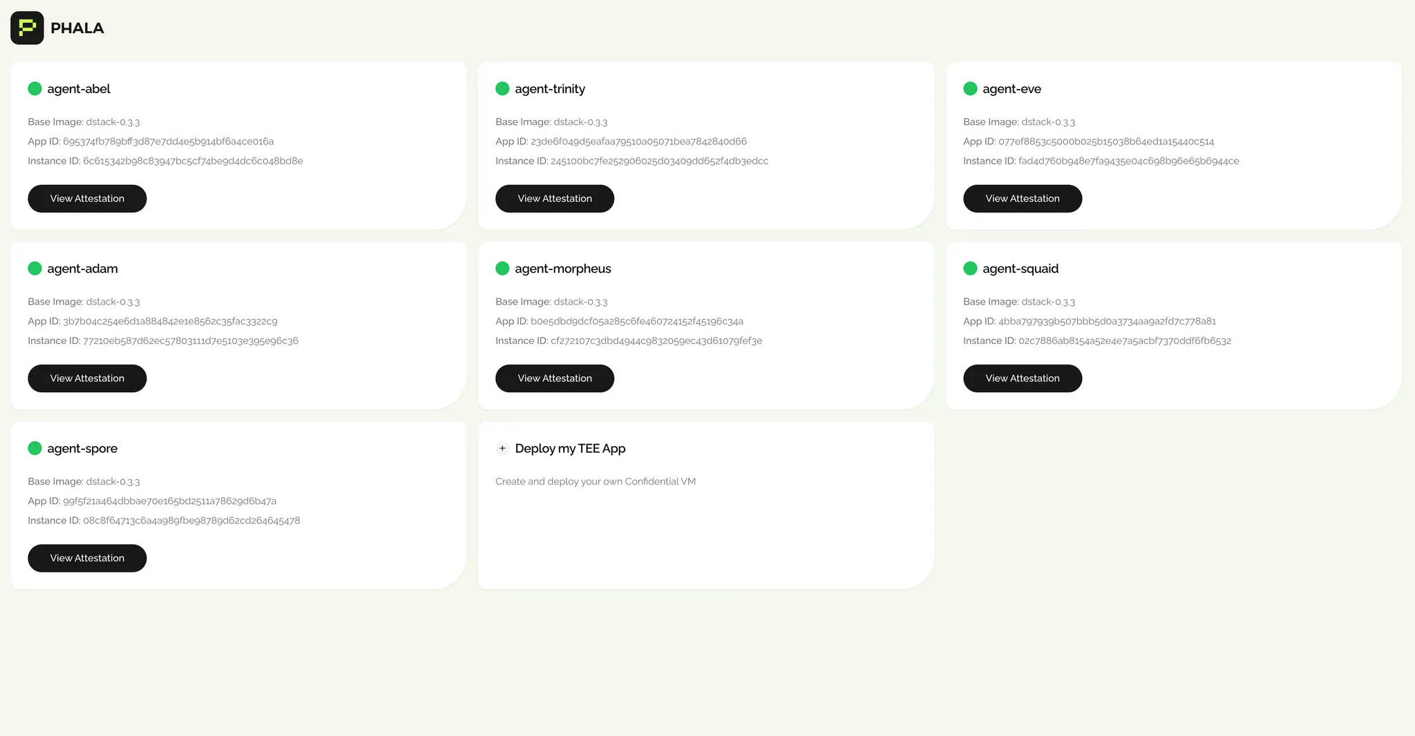 Phala Cloud offers developers a secure and efficient platform for deploying and managing AI-ready applications in a trusted environment. Built on the dStack SDK, Phala Cloud transforms the way developers build with TEEs.