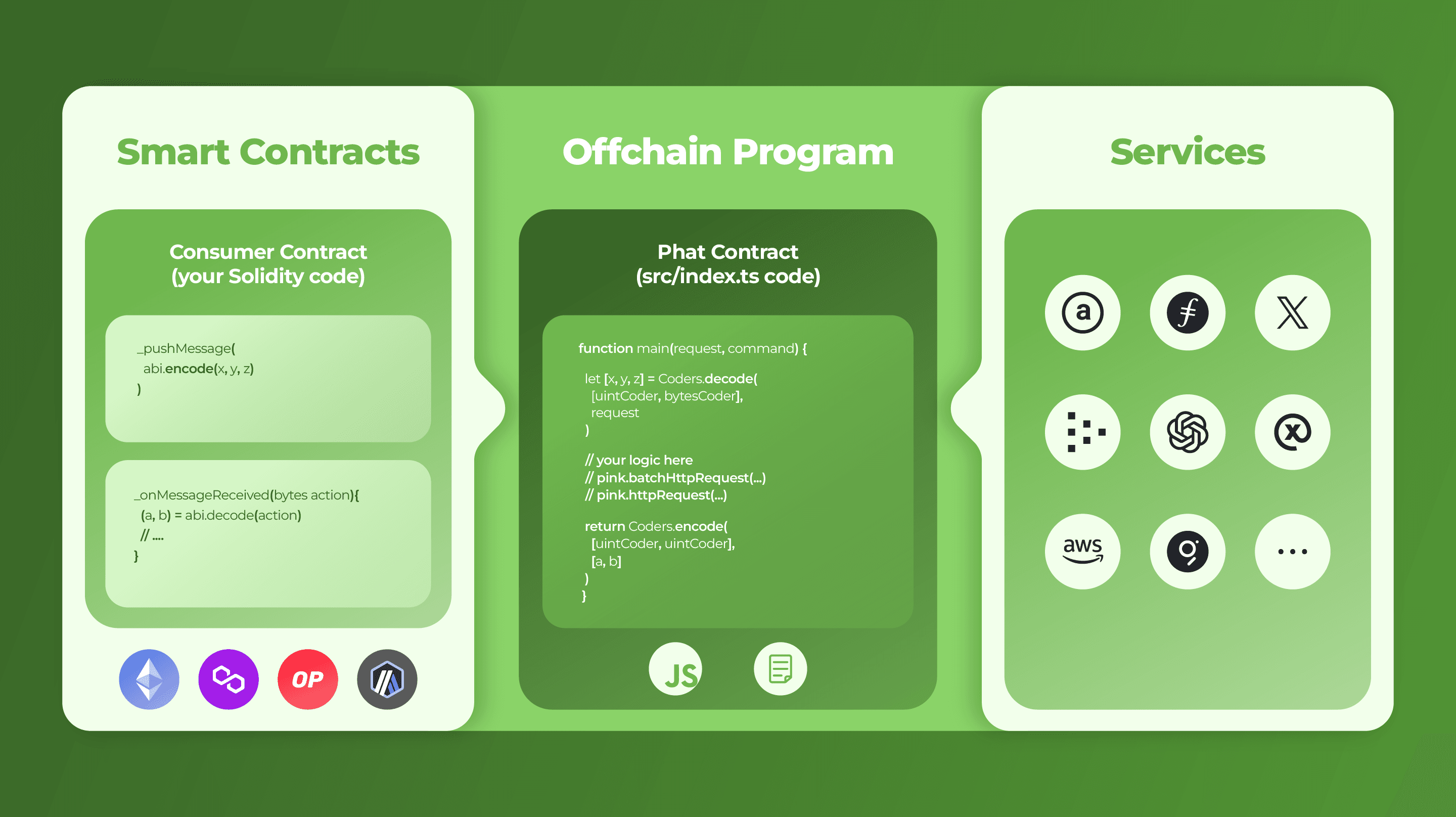 Phat Contract 2.0 provides verifiable Function-as-a-Service that share the same utility as AWS Lambda or Google Cloud, but running on decentralized infrastructure. This enables developers to connect any API to any blockchain, read data with ease, and manage APIs through smart contracts.