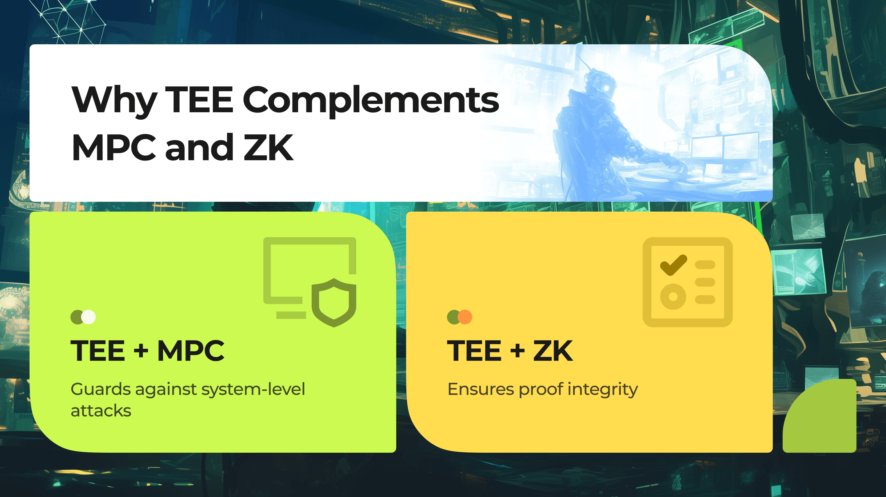 This combo lets you layer TEE’s hardware security with MPC’s multi-party logic or ZK’s proof system, giving you options to fit your app’s needs.
