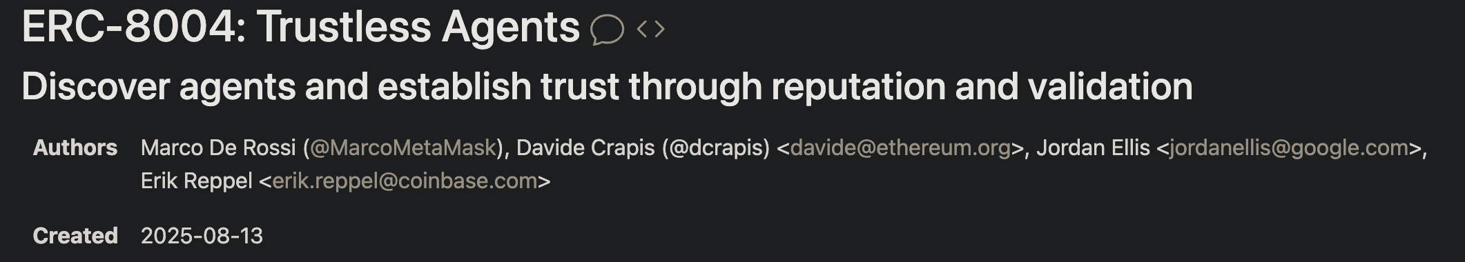 The Ethereum community is addressing this with ERC-8004 — an emerging standard for verifiable agents. The standard recognizes that users need to verify agent integrity before granting permissions. "Trust the developer" isn't enough when agents have access to your funds.