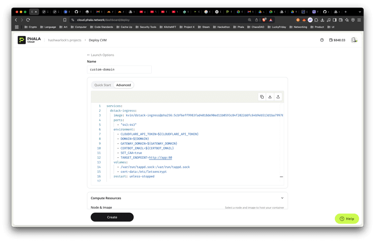 Phala’s Advanced tab accepts this verbatim when you choose docker‑compose.yml during CVM creation.